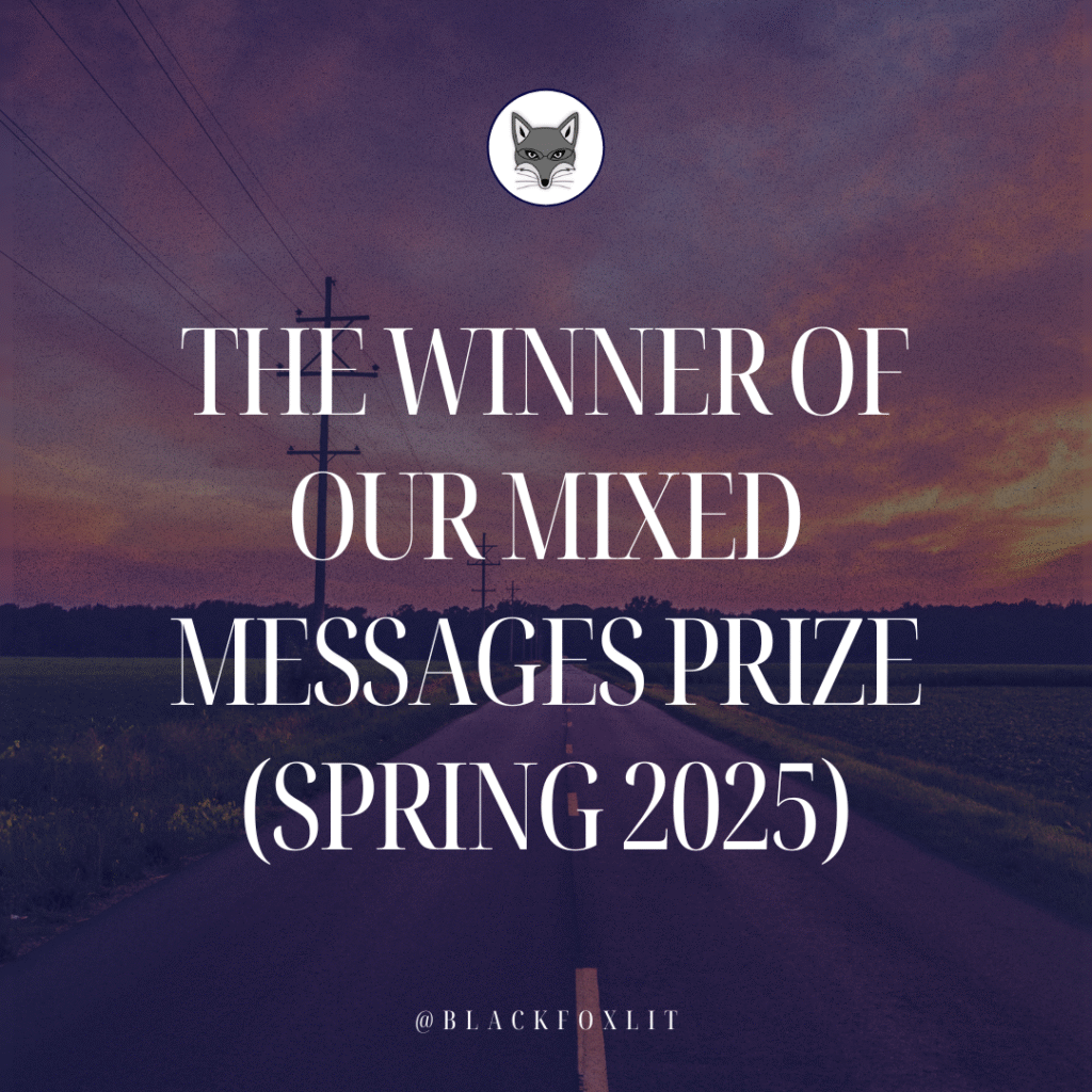 We know you’ve been waiting and the time has finally come! The results are in for our 2025 Spring Fox Tales Prize with theme, Mixed Messages! As usual, you all exceeded our expectations. The Black Fox team enjoyed the interesting…